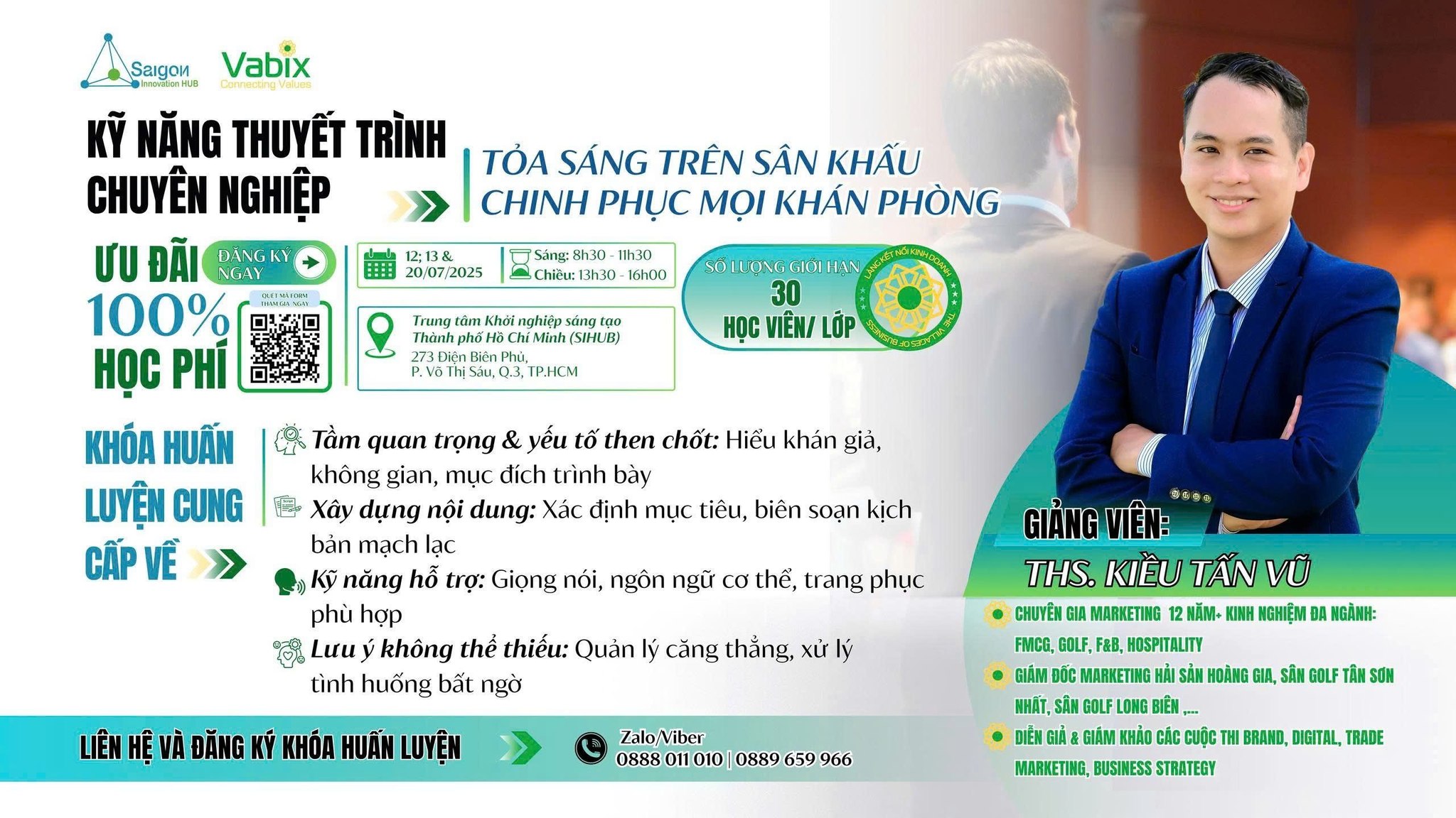 Với sứ mệnh ươm mầm ý tưởng và phát triển cộng đồng khởi nghiệp Việt Nam, SiHub và Vabix tin rằng kỹ năng thuyết trình xuất sắc là chìa khóa mở cánh cửa thành công trong gọi vốn, pitching khách hàng và dẫn dắt đội nhóm. Khi bạn tự tin kể câu chuyện của mình, cơ hội hợp tác và tăng trưởng sẽ rộng mở hơn bao giờ hết.